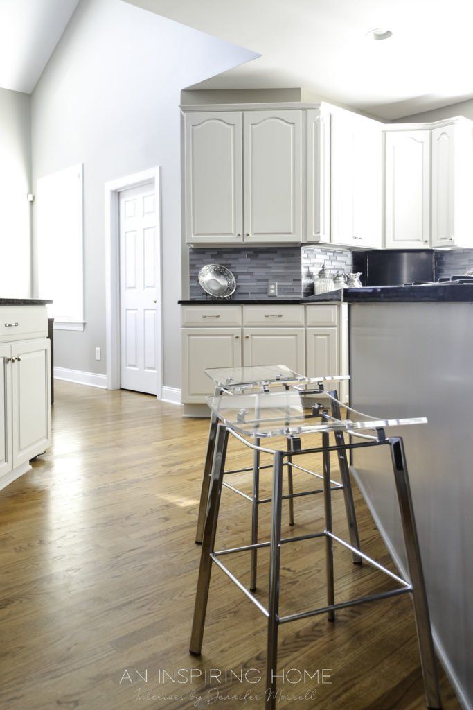 Here is a little peek at the kitchen. The cabinets got a fresh coat of light gray paint. As soon as the new light fixtures are in I will give you a full tour of the new kitchen. It’s an awesome transformation!