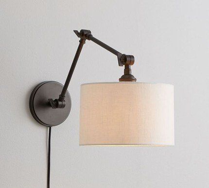 In the case of my daughter’s bedroom, we are doing built-in bookshelves on either side of the bed, which doesn’t leave room for a nightstand. Plug-in wall sconces are perfect for this situation.