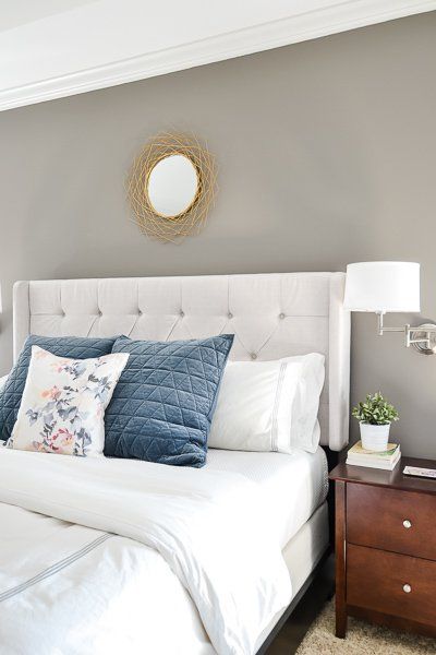 Use above a nightstand right next to the headboard. This option frees up the space on your nightstand. I love this look in a bedroom.