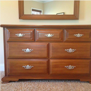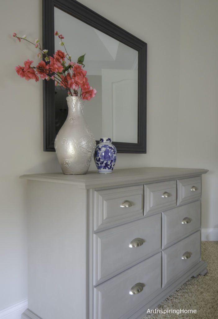 The dresser was also updated with chalk paint. This one went from dark brown to a light gray with updated drawer pulls. See the before and after pictures? What an amazing difference a few coats of paint makes!
