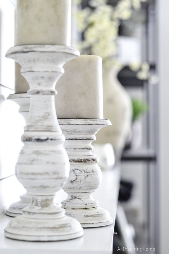Don’t forget accessories when putting a room together. Distressed candle holders, patterned vases, and even faux plants are the cherry on top for a well-designed room. Baskets not only bring texture but also provide extra storage for pillows and blankets. Thank you for taking a tour of this casual family room with a modern farmhouse touch.