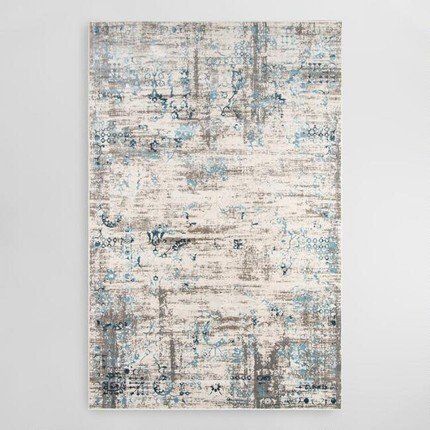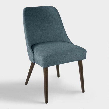 I created this dining room using a few budget friendly pieces. Notice how I coordinated the blue chairs with the rug and the art? The charcoal gray wall and black buffet and lamps add depth and drama to this space.