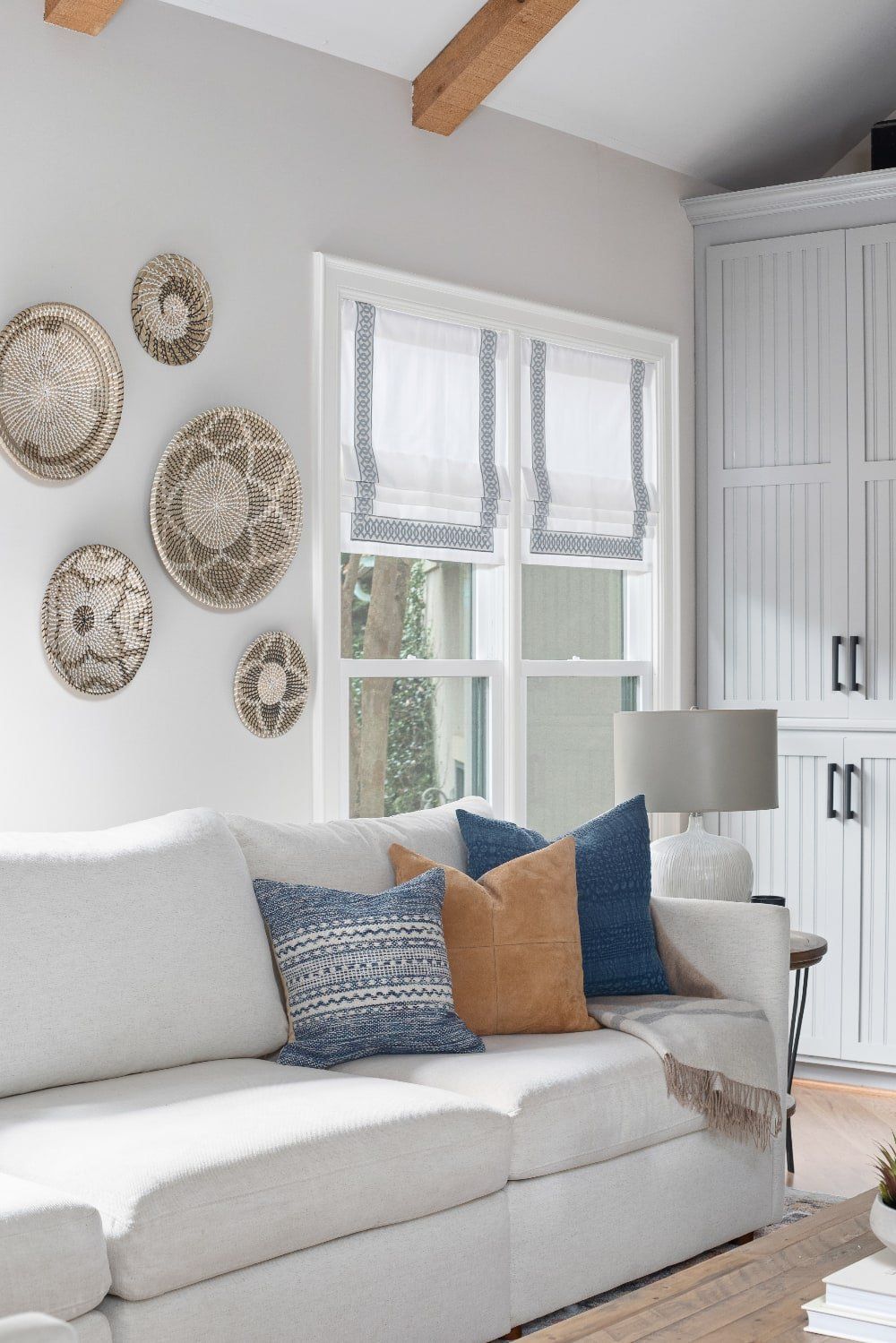 Prior to moving into their new home, our client reached out to us about furnishing their living room and renovating the primary bath. This client was craving a look that was professionally put-together for a family with kids and pets. Our solution included durable furnishings with performance fabrics as well as custom window treatments and accessories that reminded this family of the coast. We also provided finish and material selections to their contractor for the bathroom.