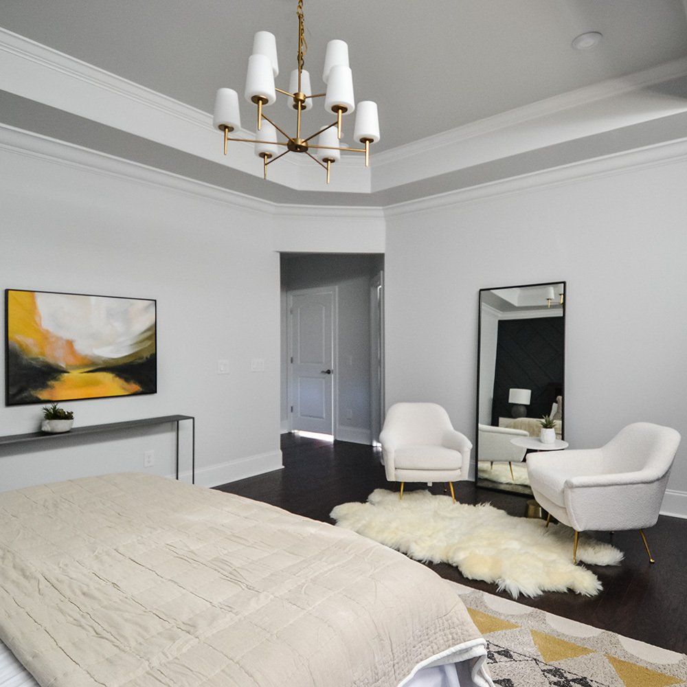 After moving into a brand new home, this family of four needed help selecting furnishings for their main floor &. master bedroom. They love color and wanted it to flow throughout the home. We created a cohesive scheme with furnishings and accessories and updated all of the builder-grade lighting so each space makes it's own statement.