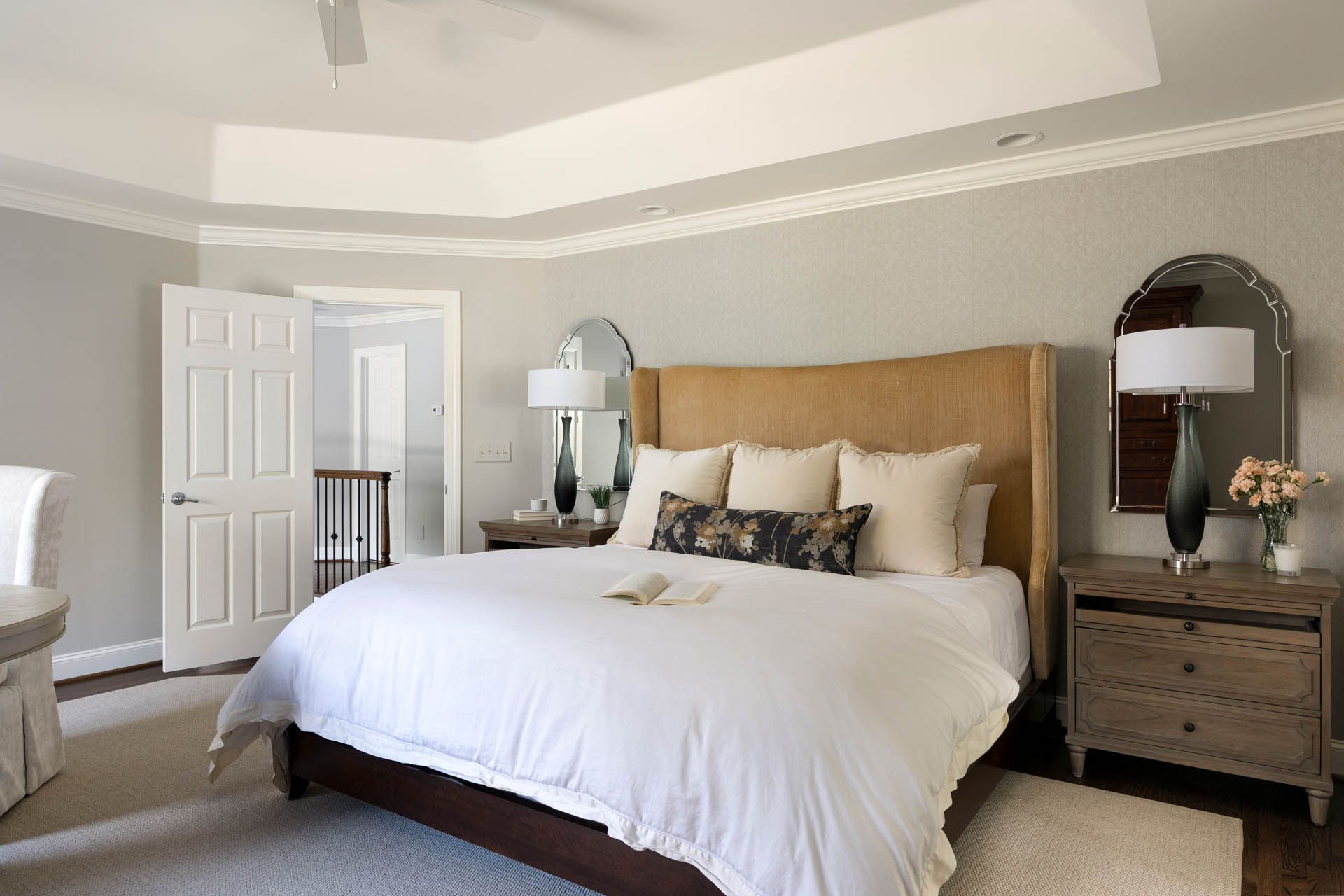 This client was longing for an updated bathroom and bedroom. The bathroom finishes felt very outdated and the bedroom lacked warmth and personality. By streamlining the shower and tub area as well as updating the finishes and fixtures we turned this bathroom into an oasis. For the bedroom we brought in the finishing touches including window treatments, soft furnishings, and accessories to give it a brand new look.