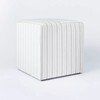 I’m trying to think where I can put these striped ottomans in my home. They are so versatile. To create a symmetrical look, place one on each side of a console table, or use them for extra seating in the living room. You can also place two at the end of a bed or in a playroom. The possibilities are endless!